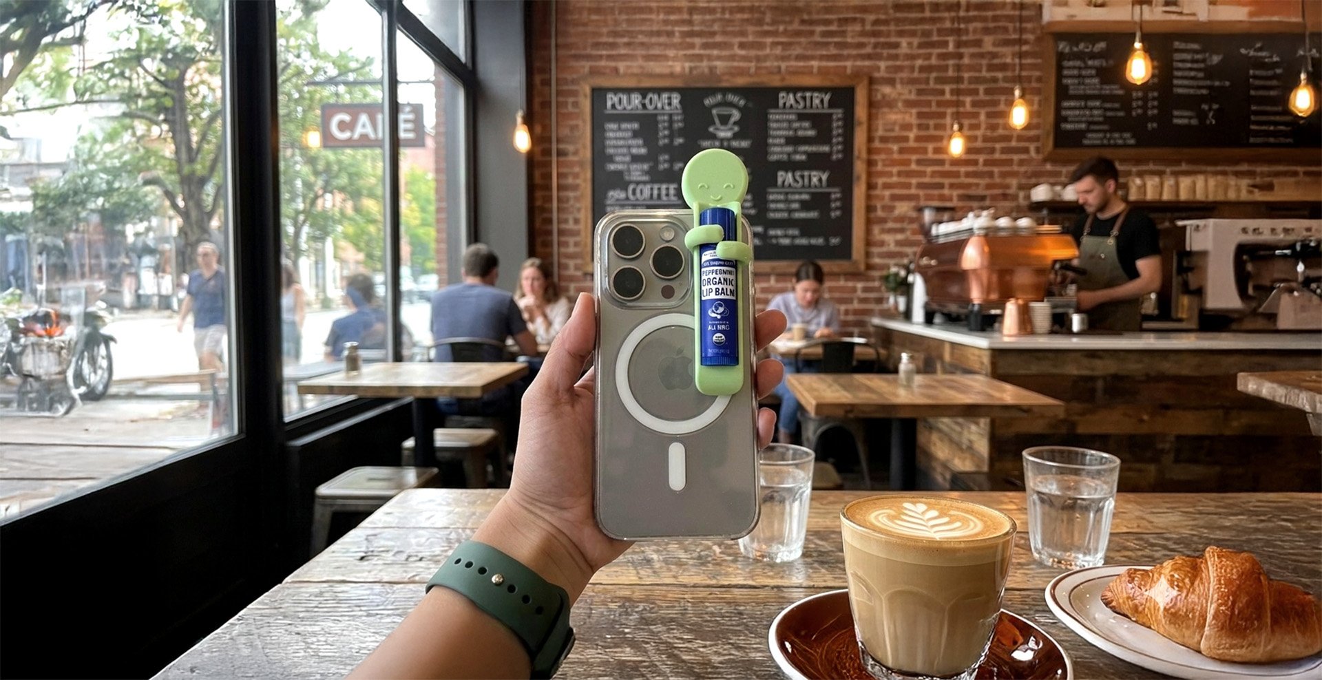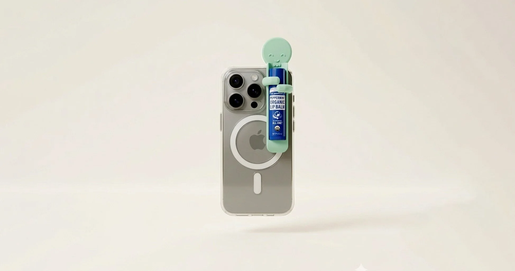 Meet smilo, your lip balm buddy that keeps your favorite tube right where you need it: on your phone. Designed to fit most standard lip balms like ChapStick, Dr. Bronner’s, Blistex, Burt’s Bees, Carmex, and more.