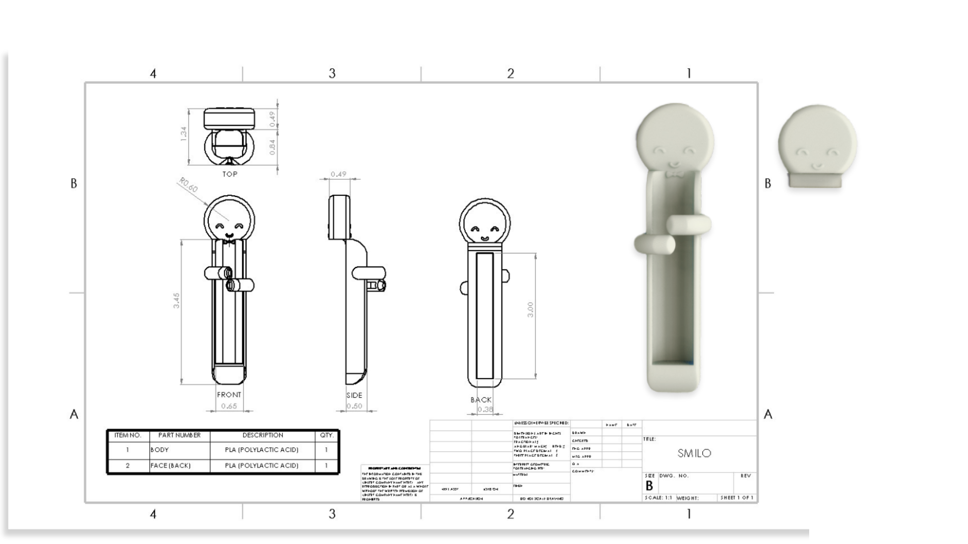 Product was printed in two parts in order to decrease material waste, print time, and overall production cost, with the tradeoff of adding the process of conjoining the pieces post print.